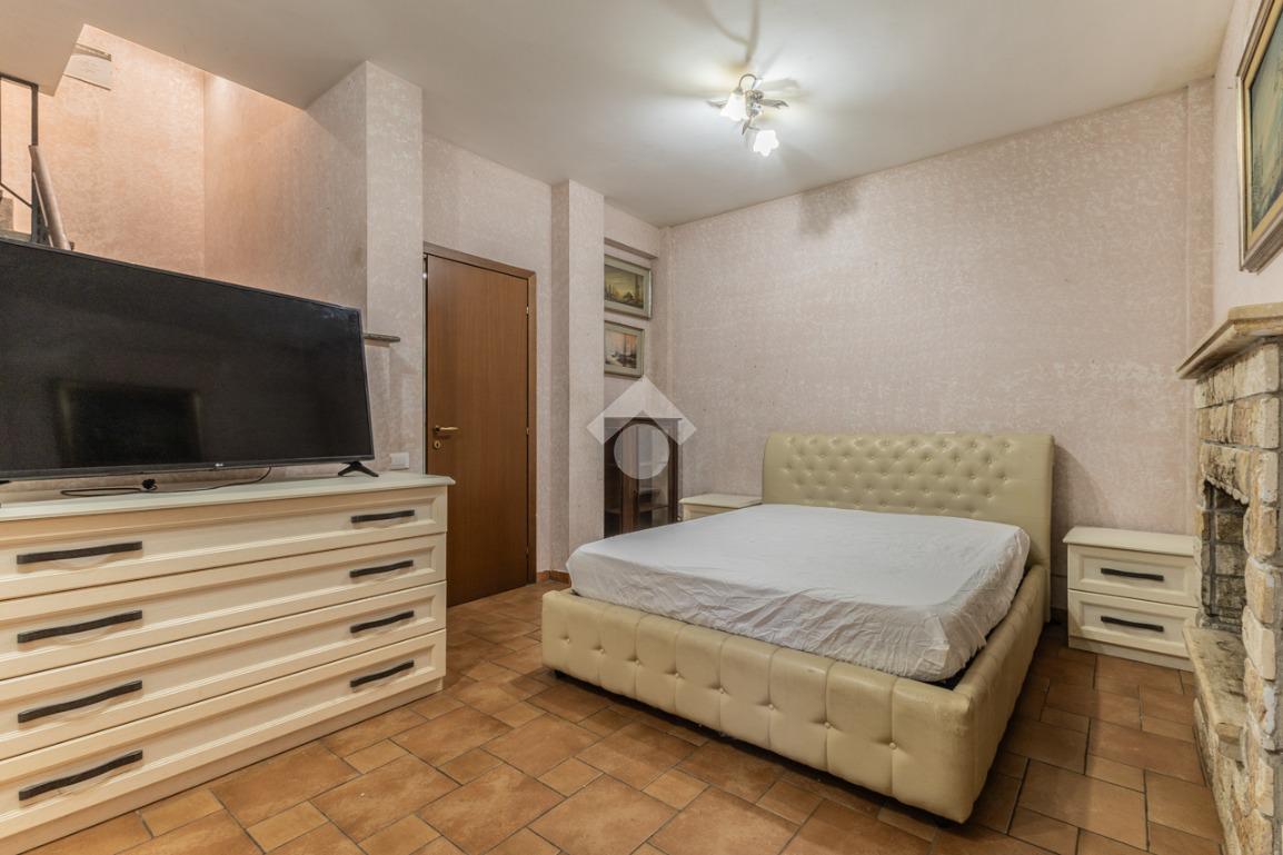 Scendendo al livello inferiore troviamo una spaziosa camera matrimoniale, un secondo bagno finestrato con vasca, un pratico ripostiglio e un caratteristico camino che rende l’ambiente accogliente e versatile. Da questo piano si accede anche a un’ulteriore uscita indipendente verso l’esterno (non collegata al cortile d’ingresso).